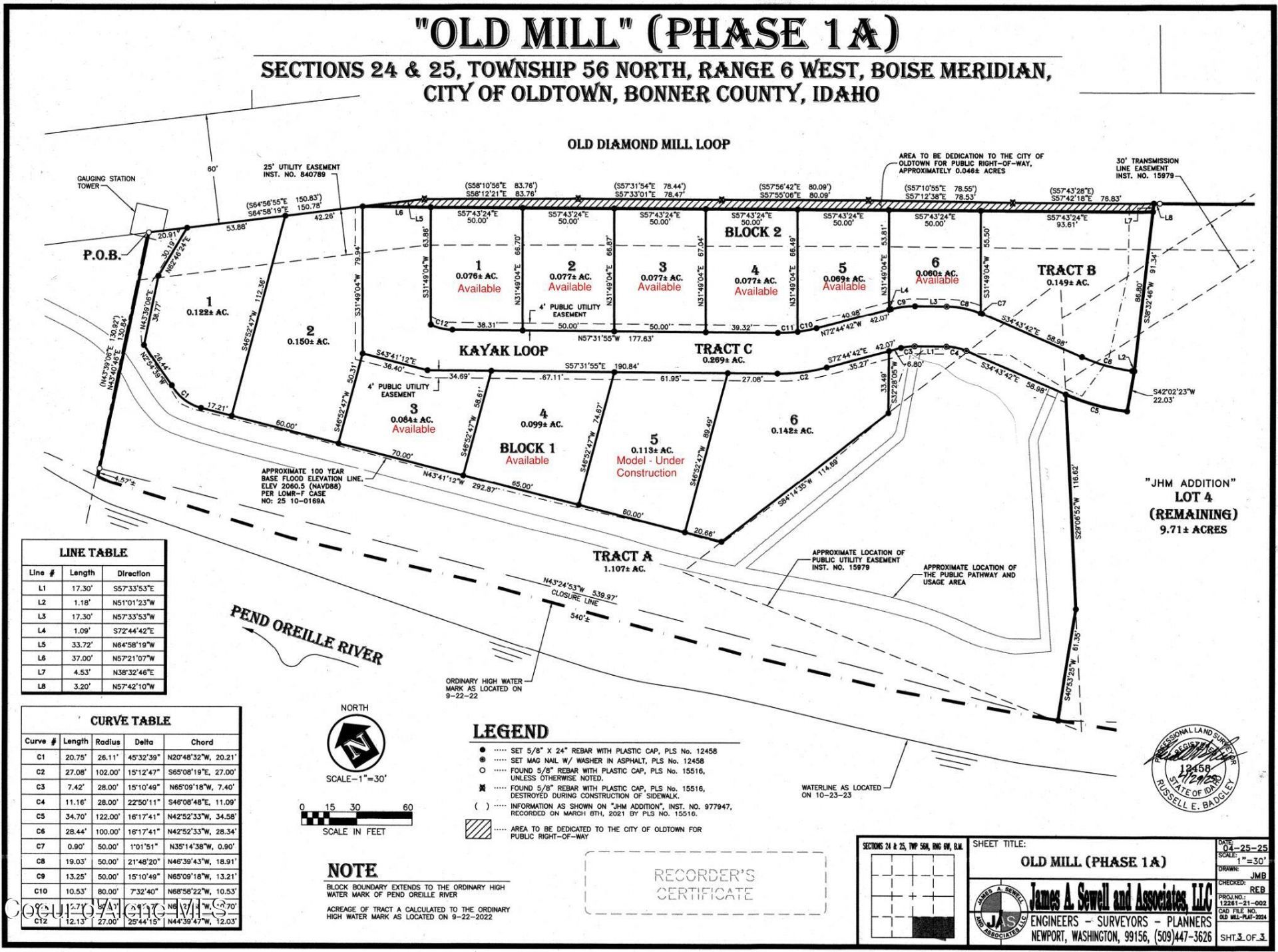 Townhouse lot in the new Old Mill Development in Oldtown. This lot will need to be sold with lot 2 next door. Plans are included for 3Br, 2-1/2 bath town home with 2 car garage. Other options are available including a detached home with one car garage.